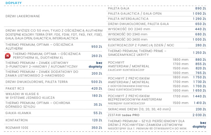 Cena dotyczy skrzydła wraz z ościeżnicą, klamką i kompletem okuć.