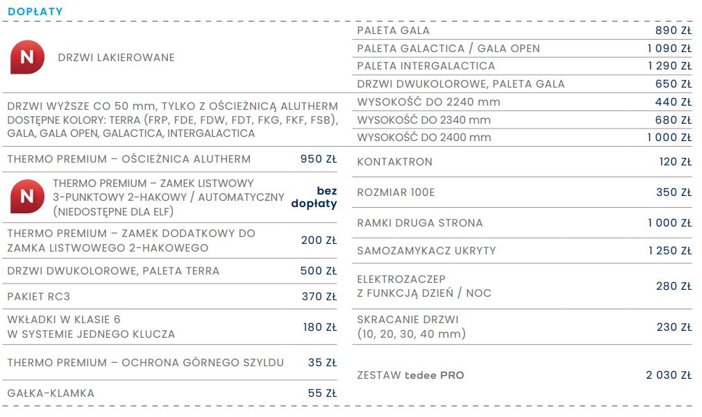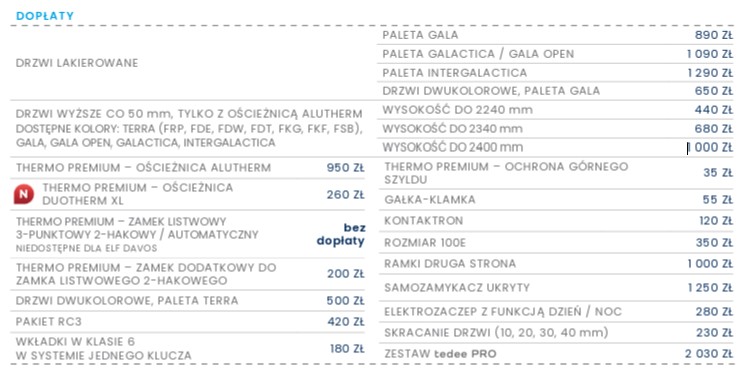 ELE BERNO w standardzie thermo prime 75 za dopłatą 2214 zł brutto.
