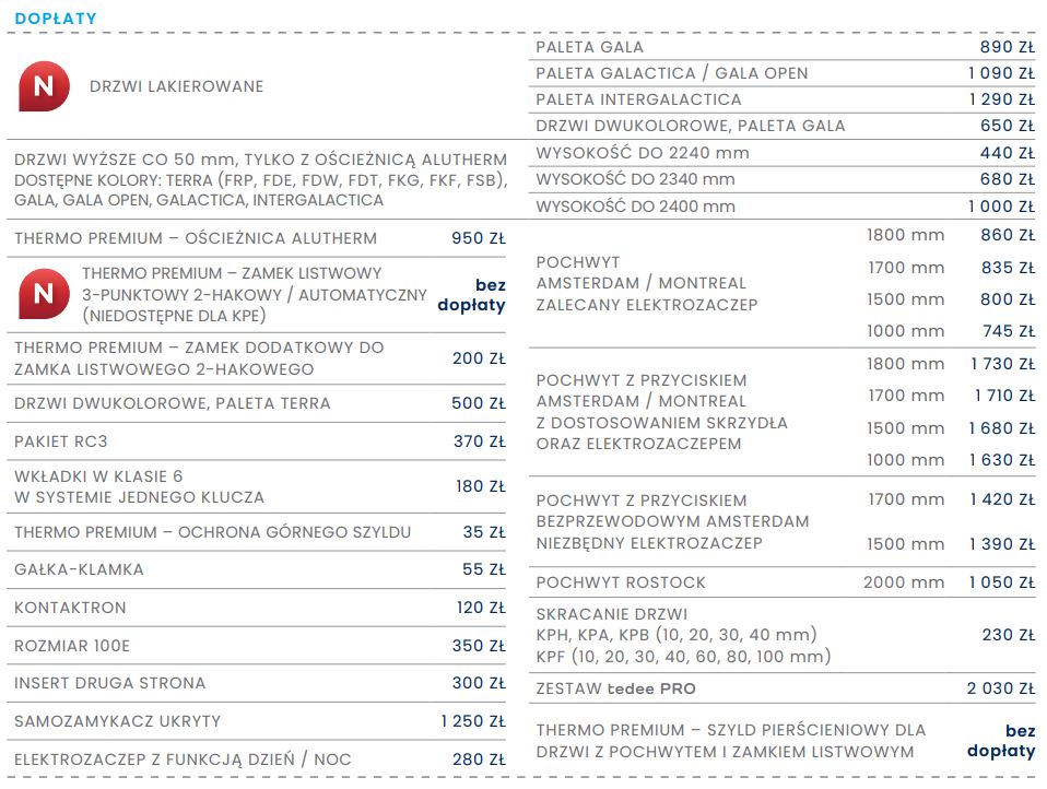 Cena dotyczy modelu: KPE DREZNO 1 / KPEB DREZNO 1 B w standardzie thermo premium 60 wraz z ościeżnicą, klamką i kompletem okuć.
