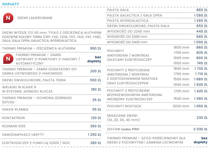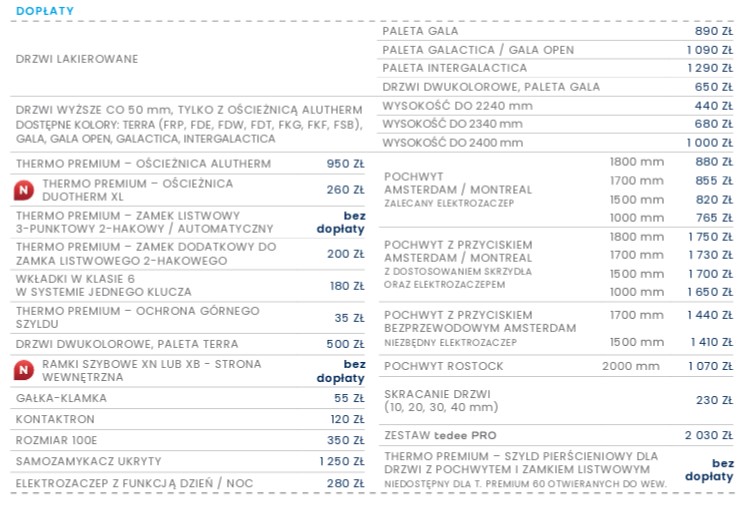 standard thermo premium 75 – dopłata: 540 zł brutto