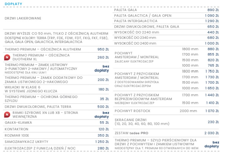 Możliwość wykonania drzwi w wersji: