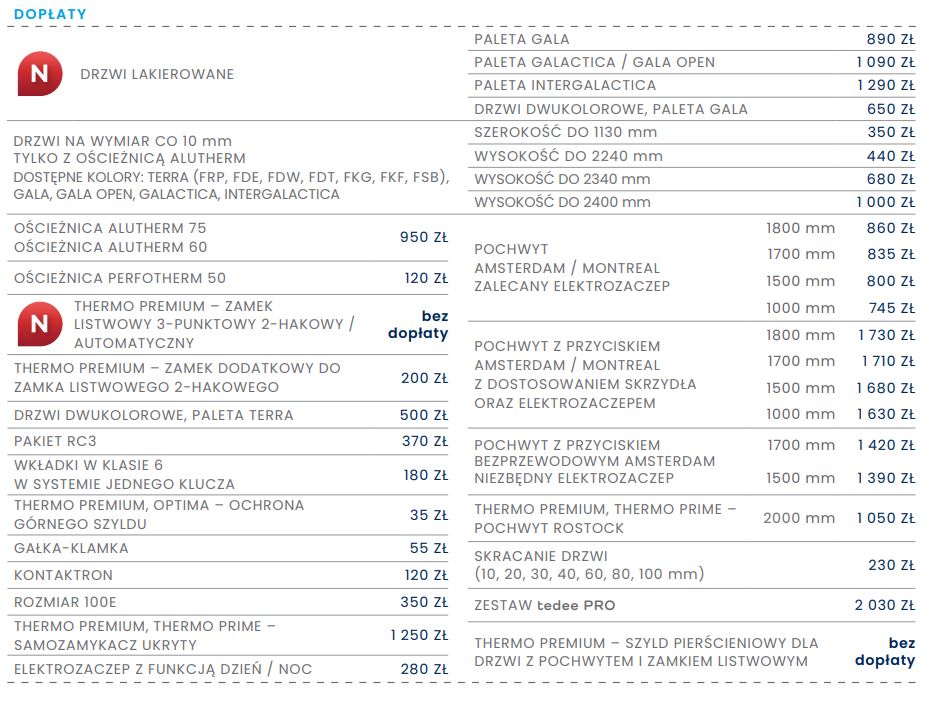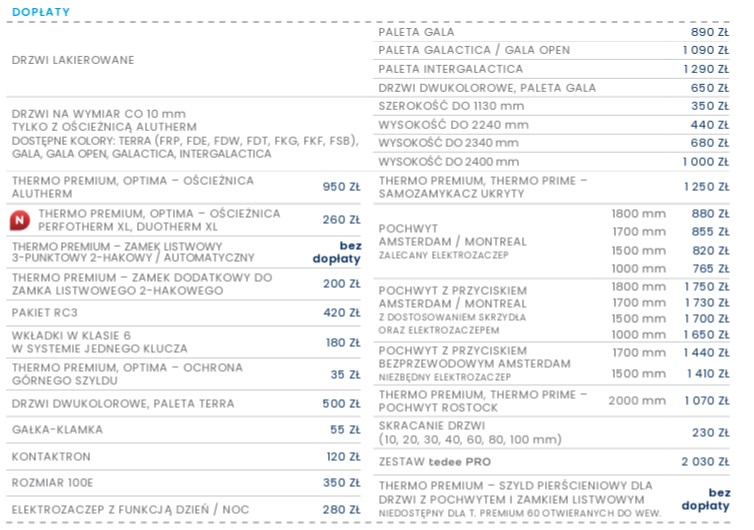 W00 PŁASKIE w standardzie thermo prime 75 za dopłatą 2862 zł brutto.