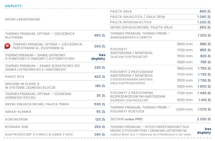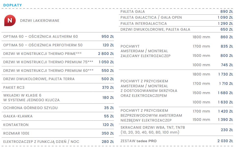Cena dotyczy modelu: TML TOKIO 1 w standardzie optima 60 wraz z ościeżnicą, klamką i kompletem okuć.
