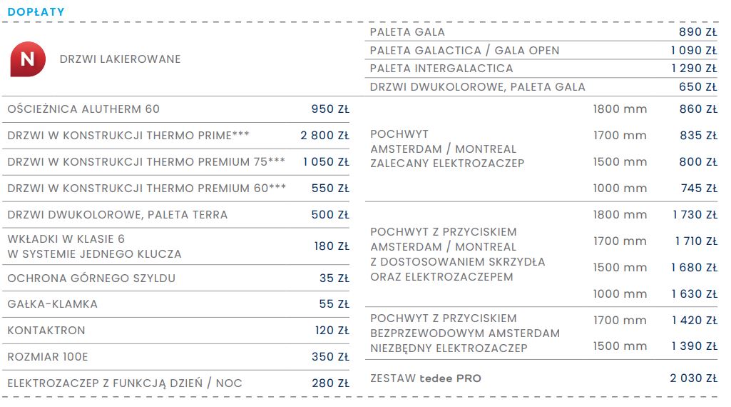 Cena dotyczy modelu: NT1 TURYN 1 / NT1B TURYN 1 B w standardzie optima 60 wraz z ościeżnicą, klamką i kompletem okuć.