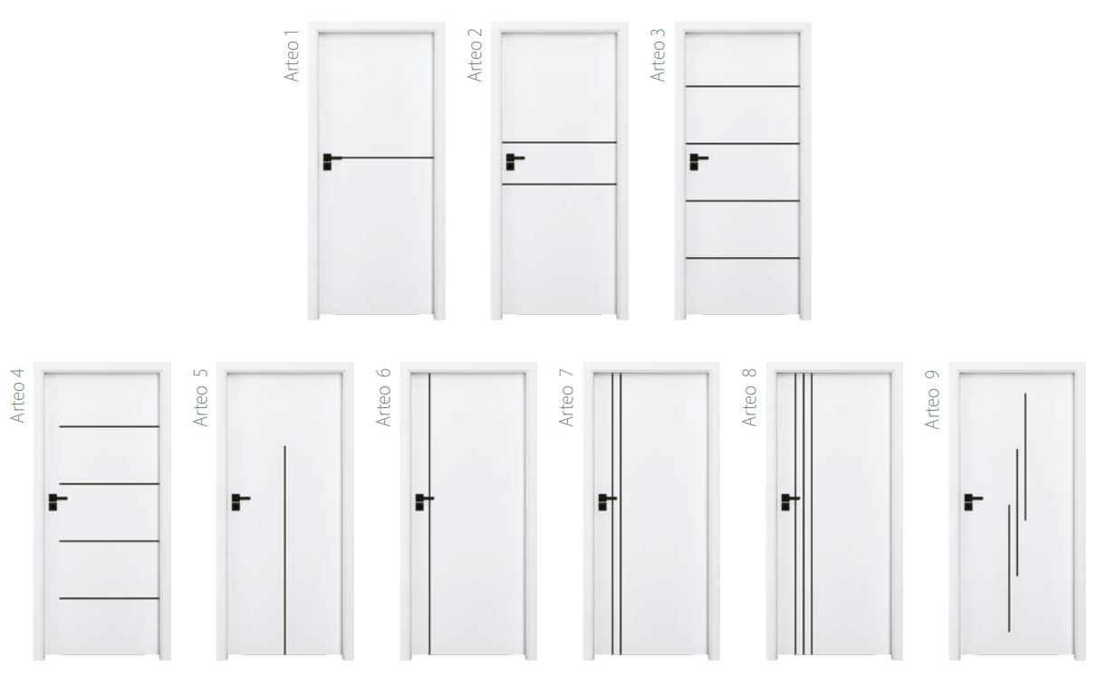 Kolekcja drzwi Arteo wzbogacona została o stylowe, aluminiowe płaskie aplikacje dostępne w trzech ekskluzywnych kolorach: głębokiej czerni, szlachetnym złocie oraz nowoczesnym srebrze. Możliwość wyboru spośród trzech kolorów oraz kombinacja z różnorodnymi okleinami pozwalają na stworzenie drzwi, które idealnie wpasują się w indywidualny styl każdego wnętrza. Dzięki drzwiom Arteo, każde wnętrze może nabrać nowego, niepowtarzalnego charakteru.