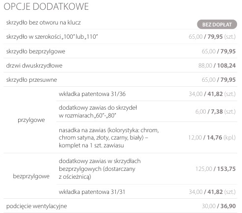 Możliwość wykonania za dopłatą drzwi w wariancie: bezprzylgowe.