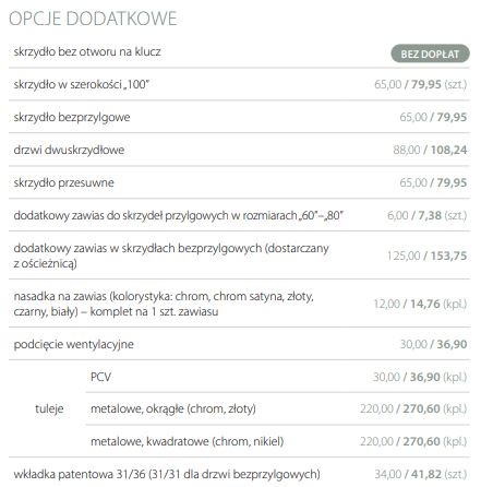 Możliwość wykonania za dopłatą drzwi w wersji: bezprzylgowej.
