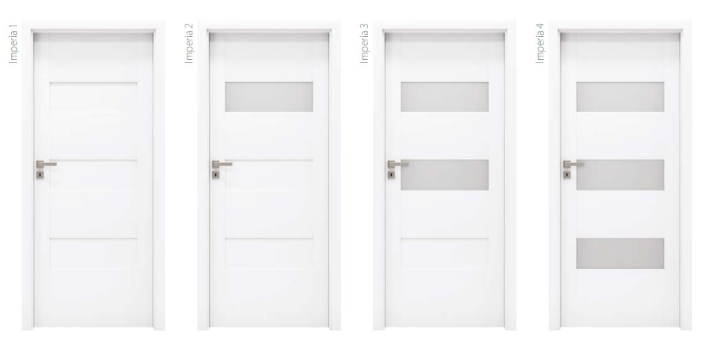 Drzwi wewnętrze – modułowe IMPERIA . Geometryczna lekkość, która sprawia, że Imperia to drzwi na miarę wnętrza. Dostępne w wersji pełnej, z jednym, dwoma lub trzema przeszkleniami. Ta różnorodność sprawia, że idealnie będą pasować do gabinetu, sypialni oraz salonu i kuchni.
