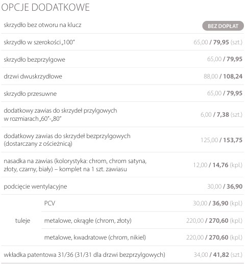 Możliwość wykonania za dopłatą drzwi w standardzie: bezprzylgowe.