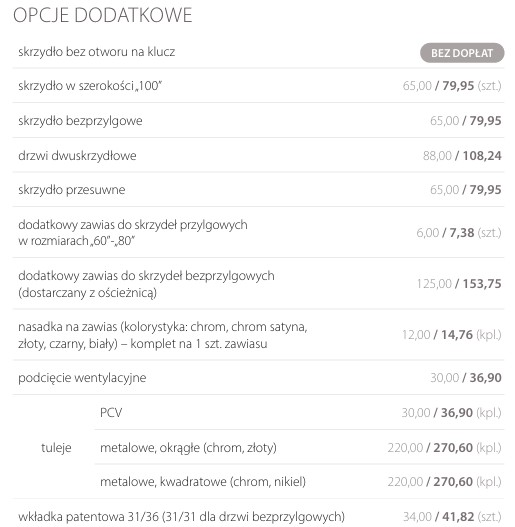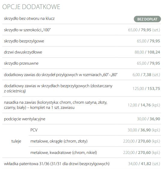 Możliwość wykonania za dopłatą drzwi w wersji: bezprzylgowej.