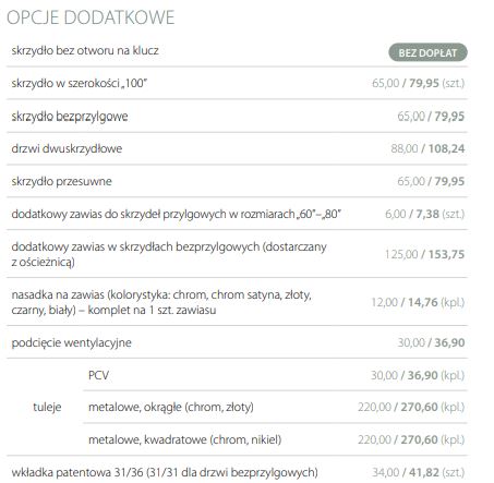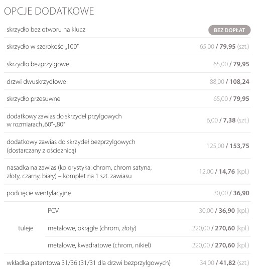 Możliwość wykonania za dopłatą drzwi w wersji: bezprzylgowej.