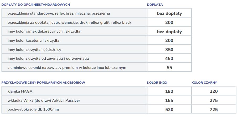 * Cena dotyczy skrzydła drzwiowego (VAT 8%) z ościeżnicą i progiem
