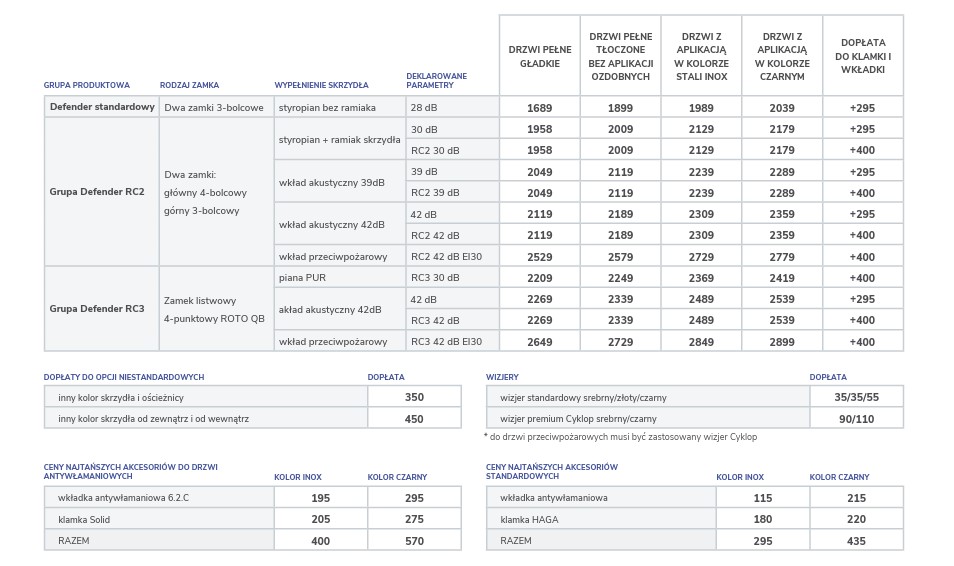 Dopłata za wkład przeciwpożarowy RC3 42 dB EI30 – 410 zł brutto.