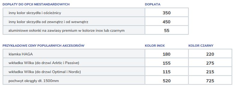 Drzwi bez przeszklenia z podwójnym kolorem również mogą stanowić efektowny element domu. Pełne skrzydła mogą być zdobione różnorodnymi tłoczeniami. Dekoracyjne aplikacje mogą być wykonane z blachy w kolorze naturalnym, czarnym lub okleinowane w różnych barwach. Duże możliwości aranżacyjne dają atrakcyjne akcesoria, takie jak pochwyty, antaby czy klamki. W innych kolekcjach również znajdą Państwo drzwi bez przeszklenia, jednak ta kolekcja koncentruje się wyłącznie na tym rozwiązaniu. Ceny doświetli dostepne w katalogu Martom. Kolorystyka oraz modele dostępne w galerii zdjęć.
