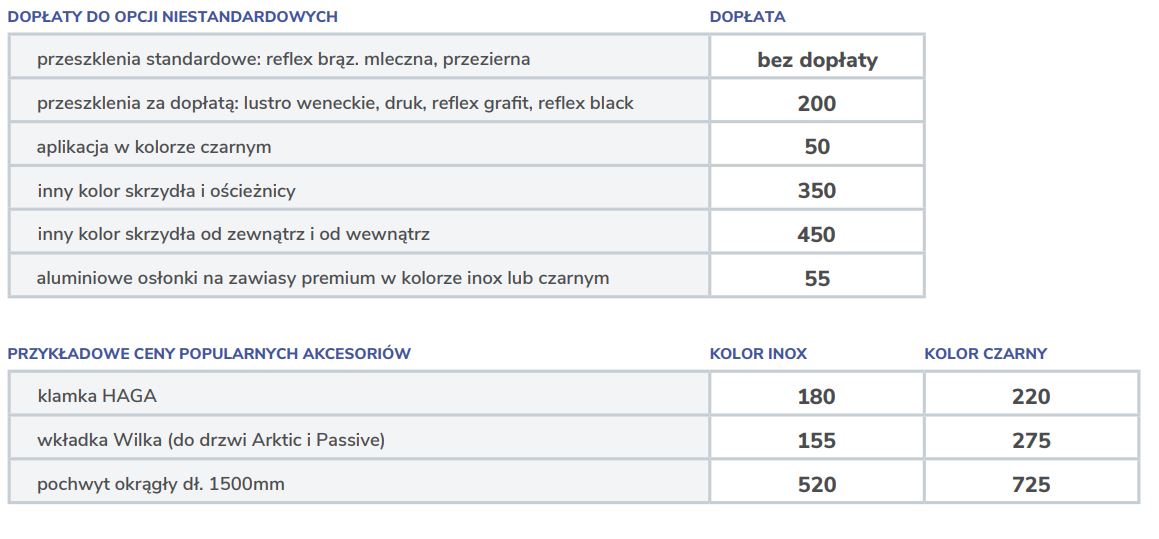 Możliwość wykonania drzwi w wersji: