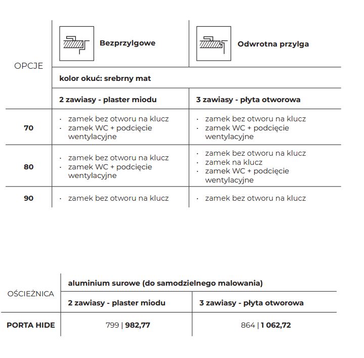 Nowoczesne modele w subtelnym wykonaniu sprawiają, że kolekcja Porta HIDE nadaje charakter wnętrzom, nie przytłaczając ich swoją obecnością. Kolekcja „Hide” to całkowicie nowa kolekcja. Drzwi pokryte lakierem klasy PREMIUM, który zapewnia nie tylko podstawową odporność na uszkodzenia ale zachowuje estetykę i wysoką jakość z sugerowanym przeznaczeniem do budynków mieszkalnych i biur.