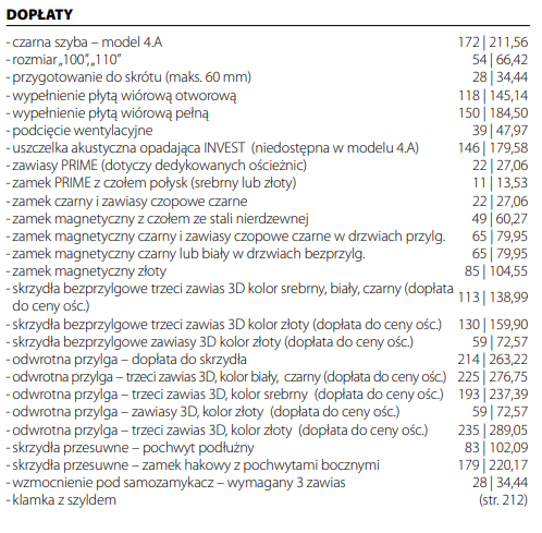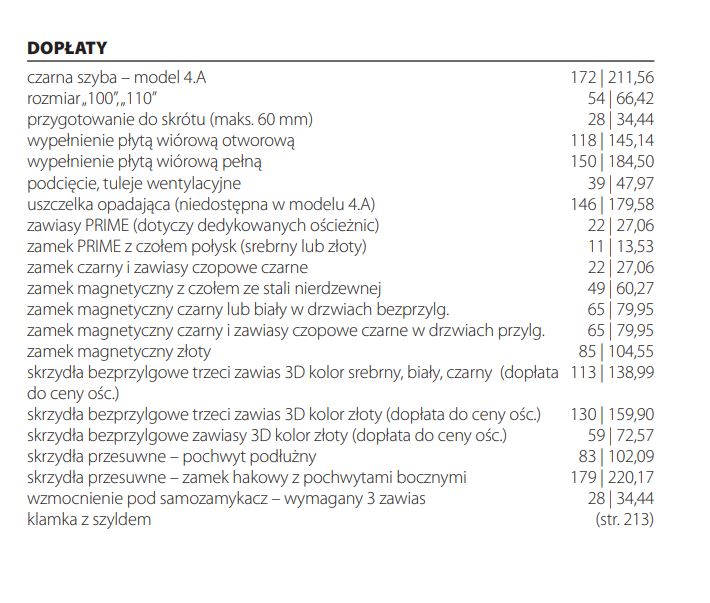 Możliwość wykonania za dopłatą w standardzie: bezprzylgowe, rewersyjne.