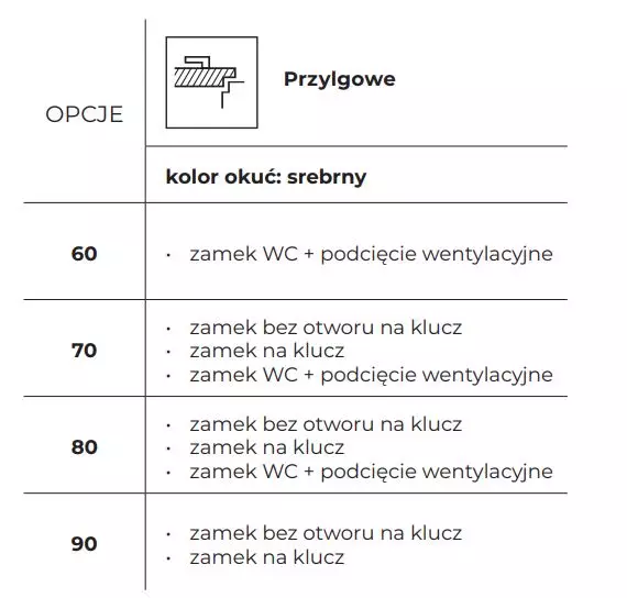 Możliwość wykonania za dopłatą w standardzie: bezprzylgowe, rewersyjne.