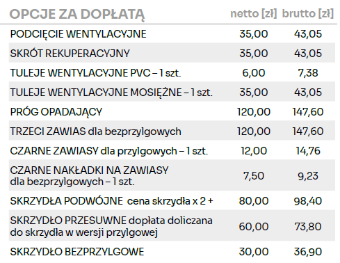 Możliwość wykonania za dopłatą w standardzie: bezprzylgowe.
