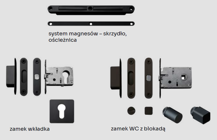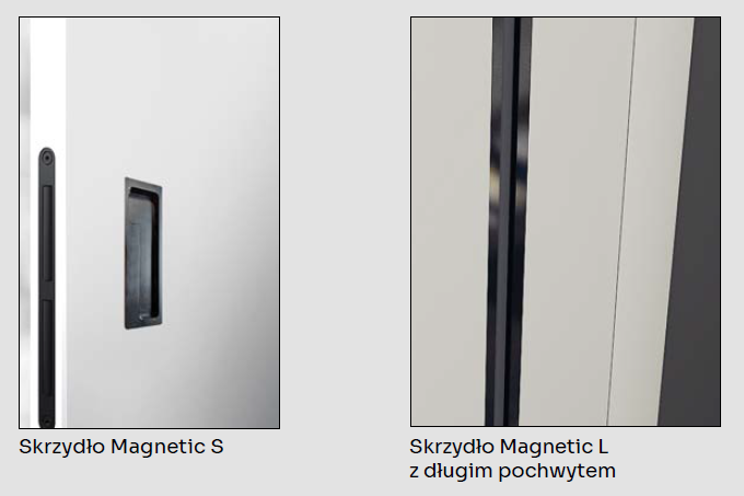 Skrzydło drzwiowe płytowe MAGNETIC PEŁNE to propozycja od firmy Voster. Magnetic pełne to nowa odsłona drzwi bezprzylgowych. Poprzez zastosowanie innowacyjnego systemu otwierania i zamykania otrzymano minimalistyczną i nowoczesną formę drzwi, które nie posiadają tradycyjnego zamka oraz klamki. W skrzydle został zamontowany blok z magnetycznej stali nierdzewnej, w ościeżnicy natomiast system silnych magnesów. Siła magnetyczna powoduje ciche i idealne domknięcie drzwi. W celu pełnego zamknięcia (zablokowania) drzwi należy zastosować jako opcję za dopłatą mały zamek z blokadą WC lub zamek na wkładkę patentową. Skrzydło wzmocnione pełną płytą. Występuje w dwóch wariantach – S i L.