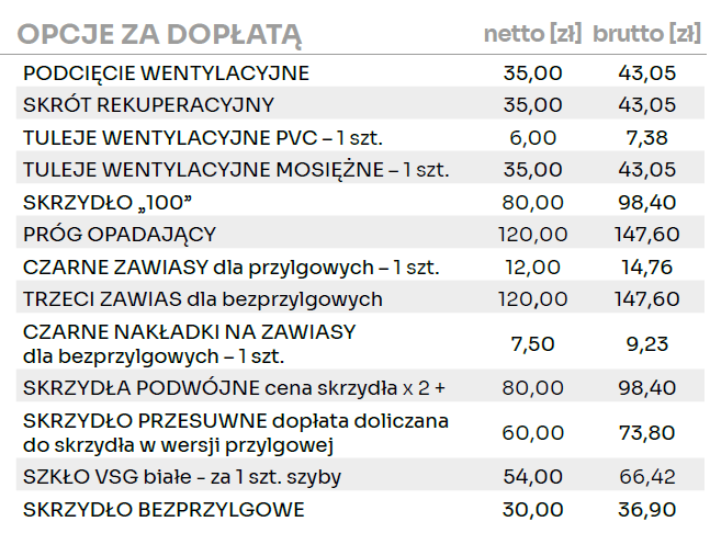 Możliwość wykonania za dopłatą w standardzie: bezprzylgowe.