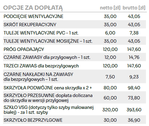 Możliwość wykonania za dopłatą w standardzie: bezprzylgowe.