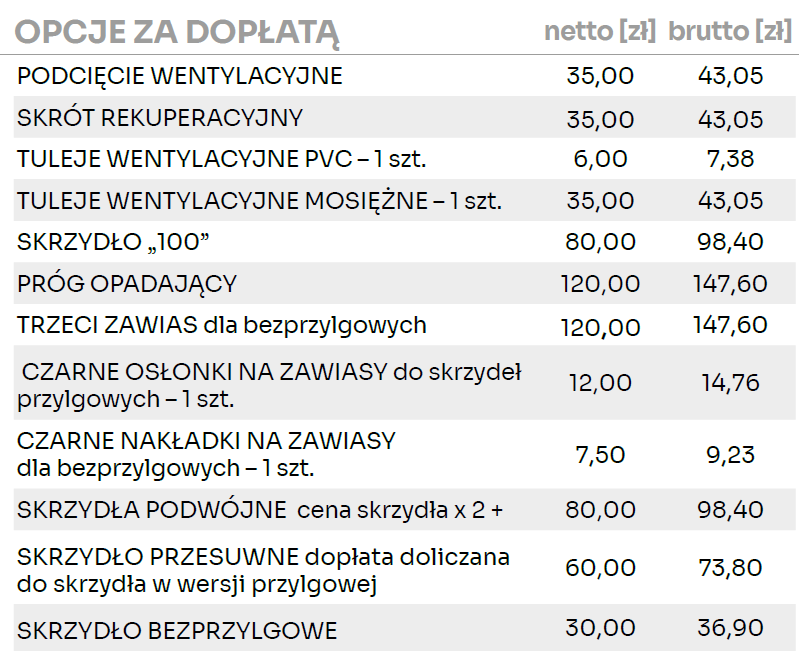 Możliwość wykonania za dopłatą w standardzie: bezprzylgowe.
