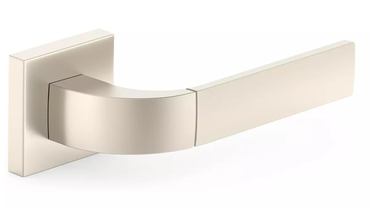 Nowoczesna delikatna klamka z kwadratowym szyldem K, nowość. Produkt posiadający specjalnie wyprofilowany kształt sprawia, że idealnie komponuje się z drzwiami czołowych producentów. Klamki z kwadratowym szyldem typu K posiadają estetyczną, jednolitą konstrukcję szyldu podklamkowego, która nie posiada dodatkowych łączeń co wpływa na poziom estetyki całego produktu. Produkt dostępny jest w szerokiej gamie modnych kolorów.