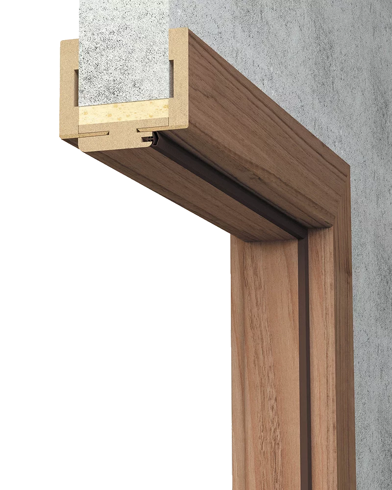 Ościeżnica regulowana z kątownikiem T80 lub T63 wyposażona jest w kątowniki z małymi promieniami zaokrąglenia profilu poprzecznego. Wykonana jest z wysokogatunkowej płyty drewnopochodnej. Od strony ekspozycyjnej pokryta jest w całości drewnopodobną folią dekoracyjną DRE-Cell Decor, folią 3D, laminatem CPL gr. 0,15 – 0,2 mm lub jest malowana **. Jej konstrukcja pozwala na zastosowanie do ścian o grubości od 60 – 320 mm. Łączenie pod kątem 90o dostępne jest z kątownikiem T80 w kolorze biała mat, czarna mat 2, biały malowany akrylowy UV, sosna biała, dąb piaskowy, dąb polski 3D. Ościeżnica regulowana ma zastosowanie do: