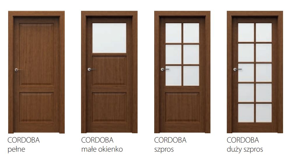 Modele z kolekcji Porta CORDOBA to propozycja dla ludzi ceniących sobie klasyczny styl i ekologię, dla których minimalizm i klasyka pełni istotną rolę przy projektowaniu wnętrz. Ten model jest idealny dla osób wyróżnić swoje mieszkania wyjątkowo atrakcyjnym i klasycznym stylem. Skrzydła występują w różnych wariantach: z całkowitym wypełnieniem, z małym lub dużym szprosem, a także z okienkiem w górnej części skrzydła. Duże możliwości zastosowania przeszkleń rozświetli nasze pomieszczenia. Kolorystyka i wzory skrzydła drzwiowego dostępna w galerii zdjęć.