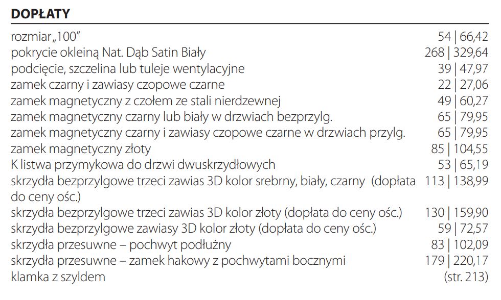 Możliwe dodatkowe płatności