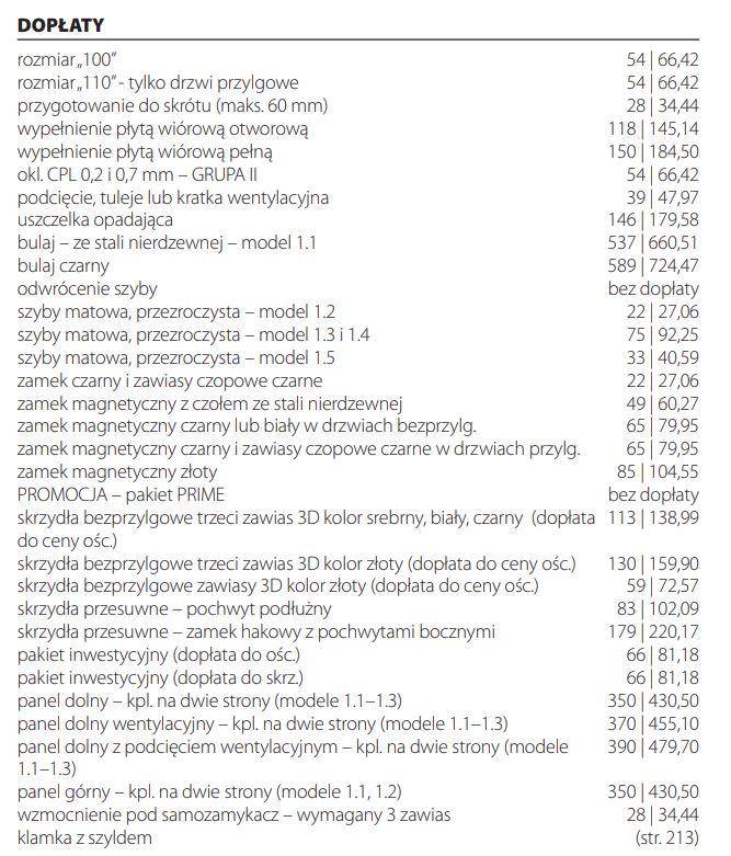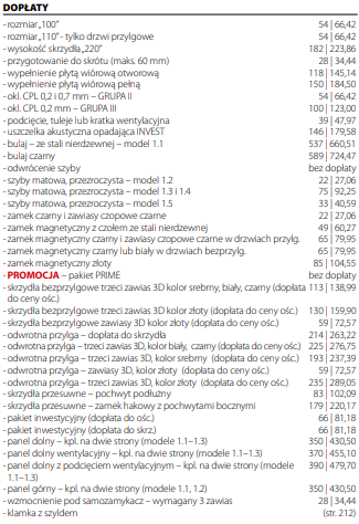 Możliwość wykonania za dopłatą w standardzie: bezprzylgowe, rewersyjne.