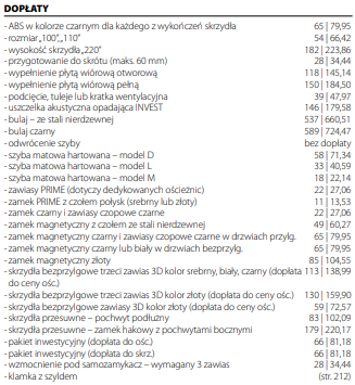Możliwość wykonania za dopłatą w standardzie: bezprzylgowe, rewersyjne.