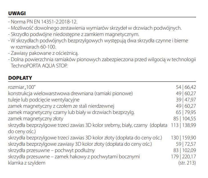 * Cena dotyczy skrzydła drzwiowego (VAT 8%)