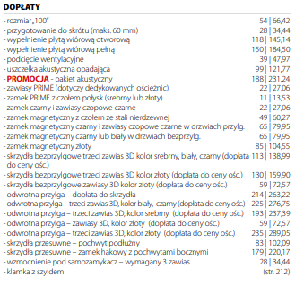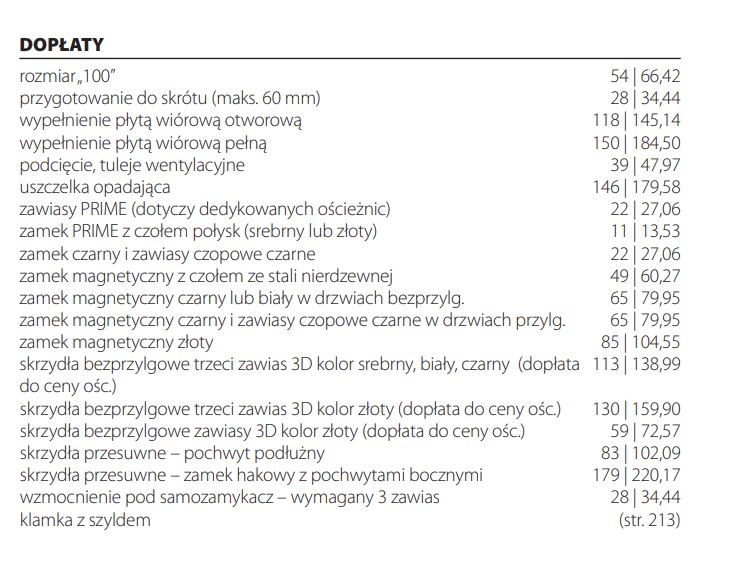 Możliwość wykonania za dopłatą w standardzie: bezprzylgowe, rewersyjne.
