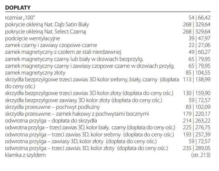 Możliwość wykonania za dopłatą w standardzie: bezprzylgowe, rewersyjne.
