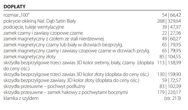 Możliwe dodatkowe płatności