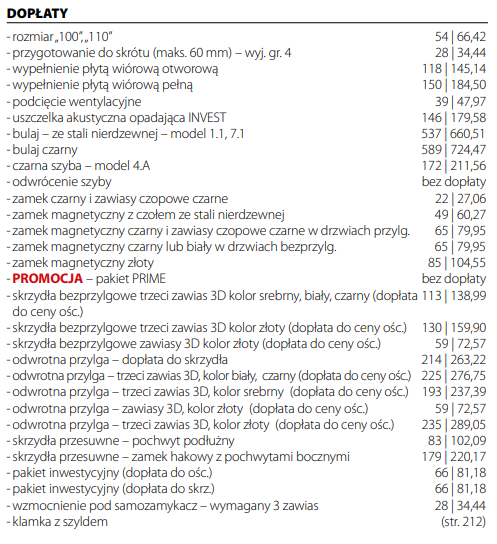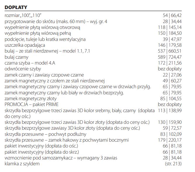 Możliwość wykonania za dopłatą w standardzie: bezprzylgowe, rewersyjne.