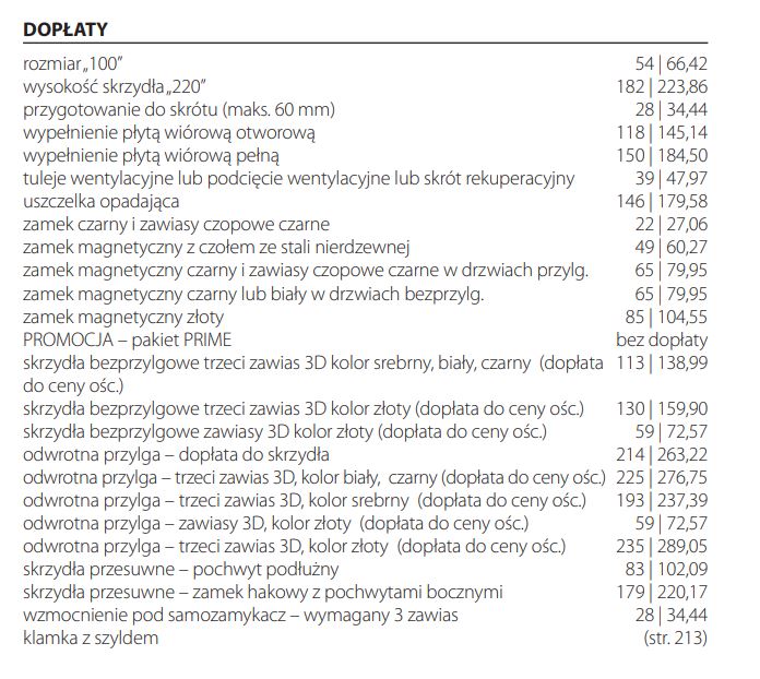 Możliwość wykonania za dopłatą w standardzie: bezprzylgowe, rewersyjne.