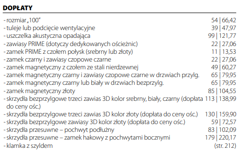 Możliwość wykonania za dopłatą w standardzie: bezprzylgowe, rewersyjne.