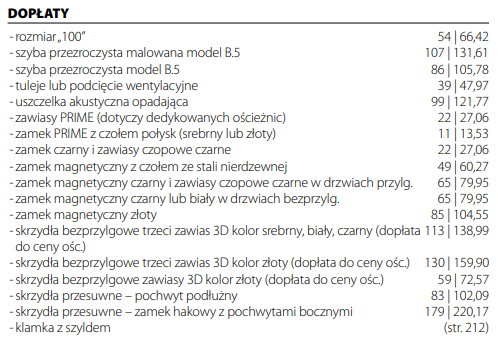 Możliwość wykonania za dopłatą w standardzie: bezprzylgowe, rewersyjne.