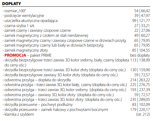 Możliwość wykonania za dopłatą w standardzie: bezprzylgowe, rewersyjne.