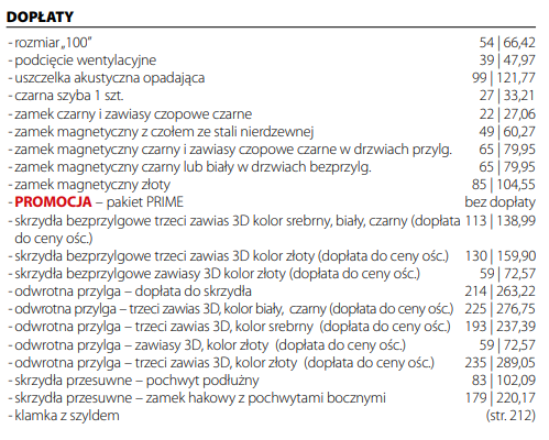 Możliwość wykonania za dopłatą w standardzie: bezprzylgowe, rewersyjne.